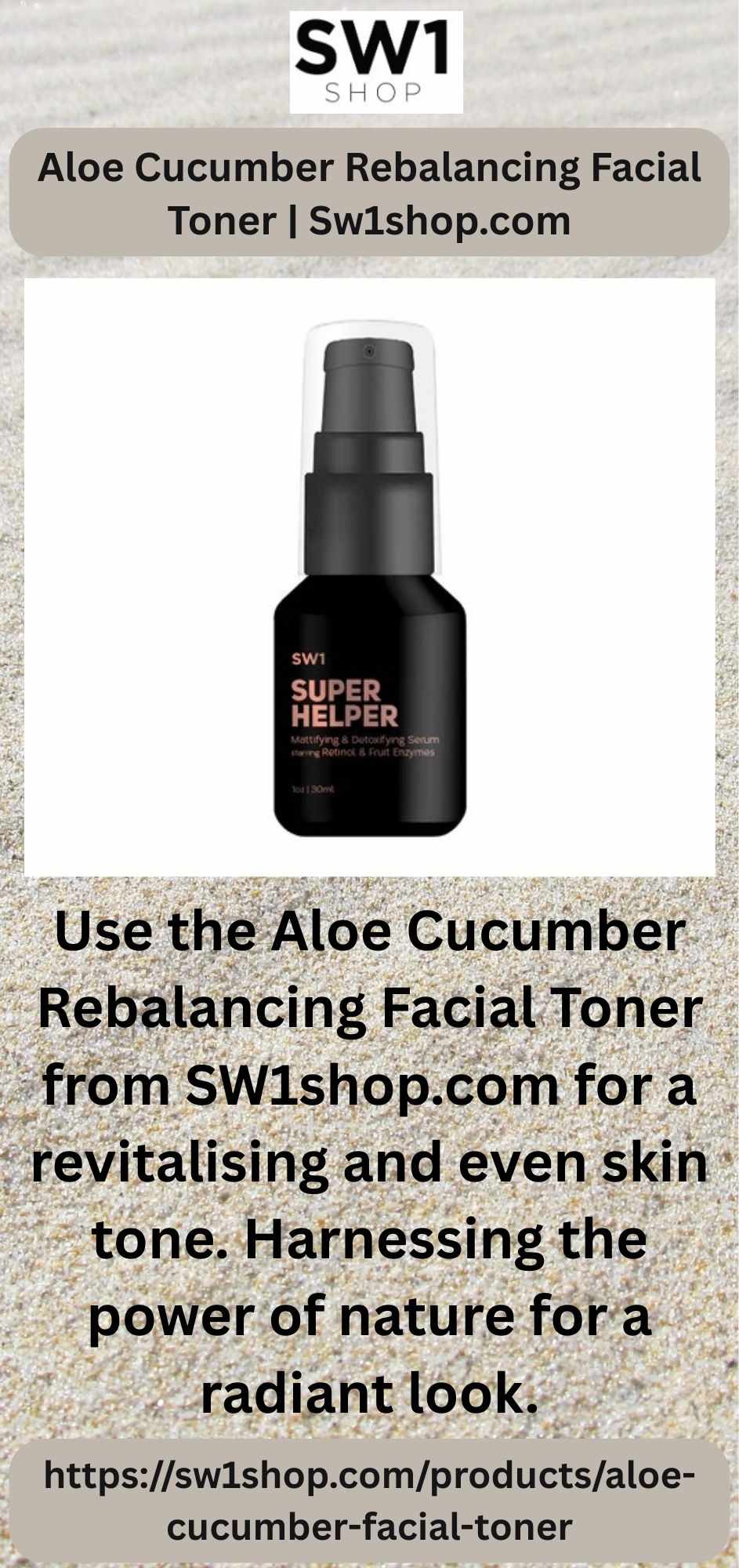 Use the Aloe Cucumber Rebalancing Facial Toner from SW1shop.com for a revitalising and even skin tone. Harnessing the power of nature for a radiant look.